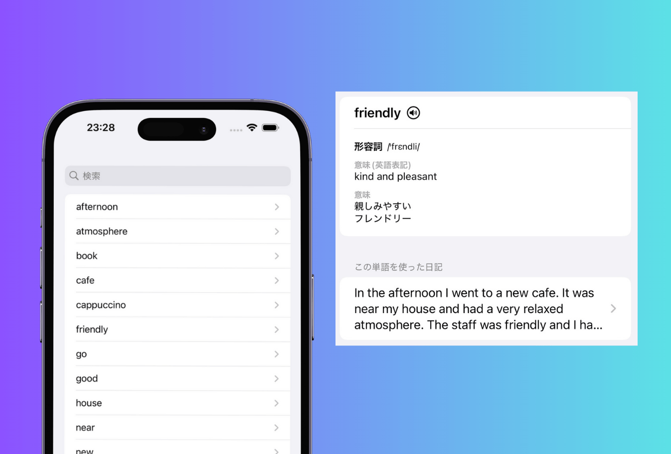 日記から英単語辞書を自動作成。 英単語から日記を探すこともできます。